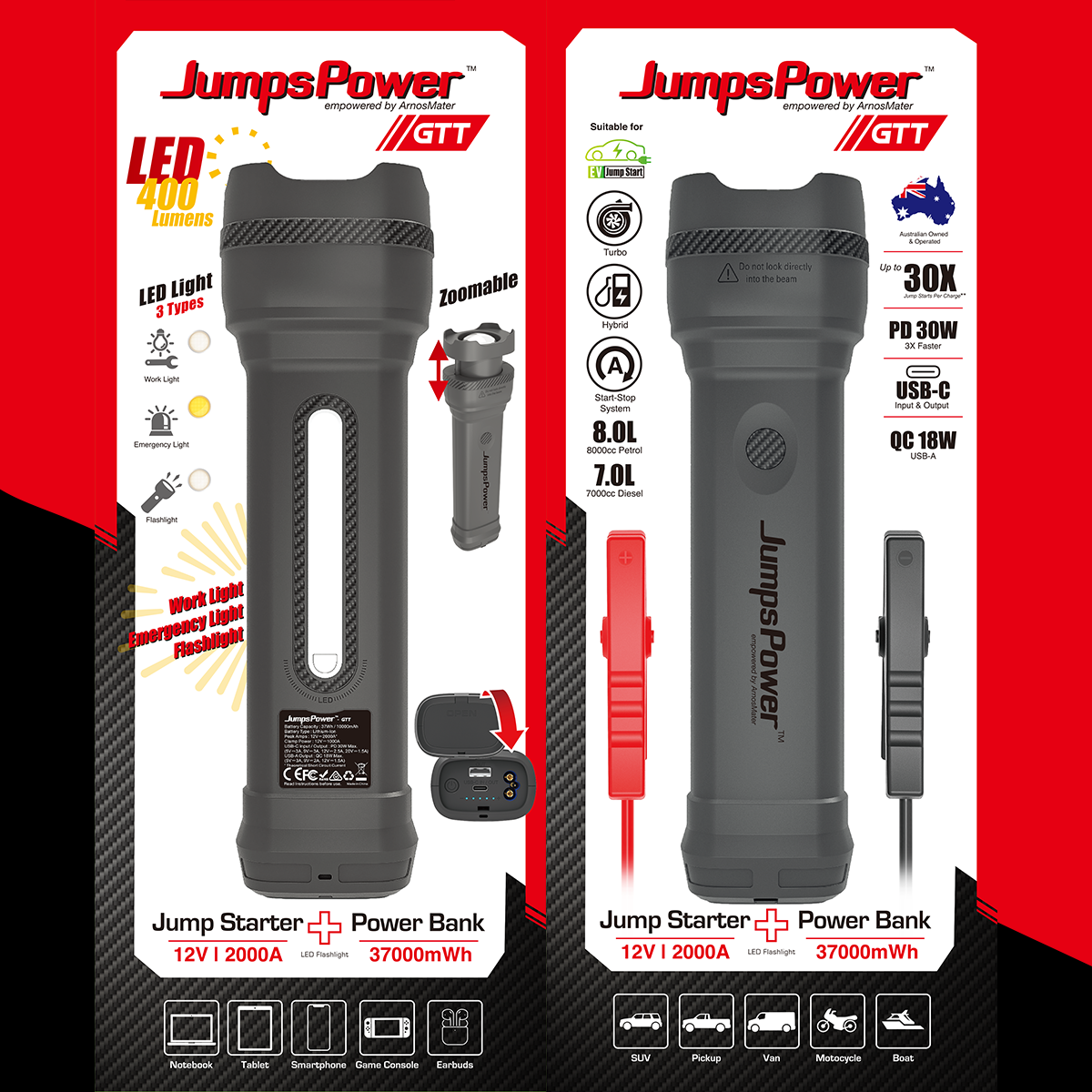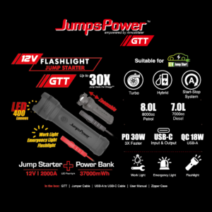 JumpsPower GTT Zoomable Flashlight Jump Starter 10000mAh Power Bank